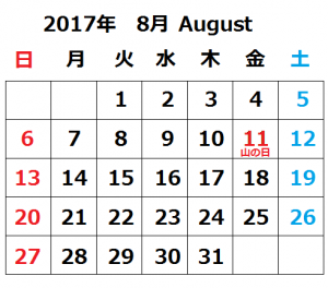 今年は8月11日が山の日という祝日にあたりますが日曜日になっているため、8月12日が振替休日となっています。